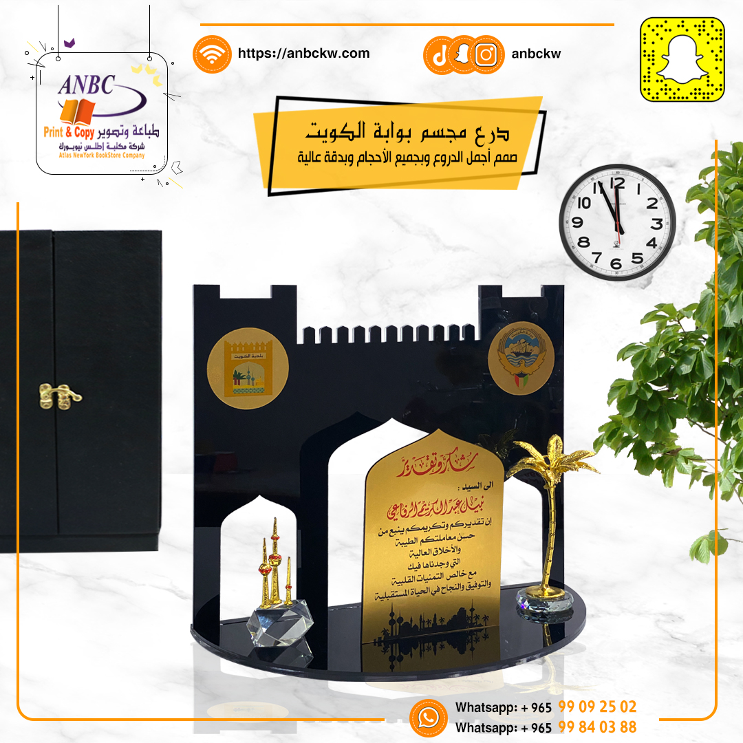مجسم أكريليك بوابة الكويت أسود مع طباعة Black acrylic sculpture of the Kuwait Gate with print