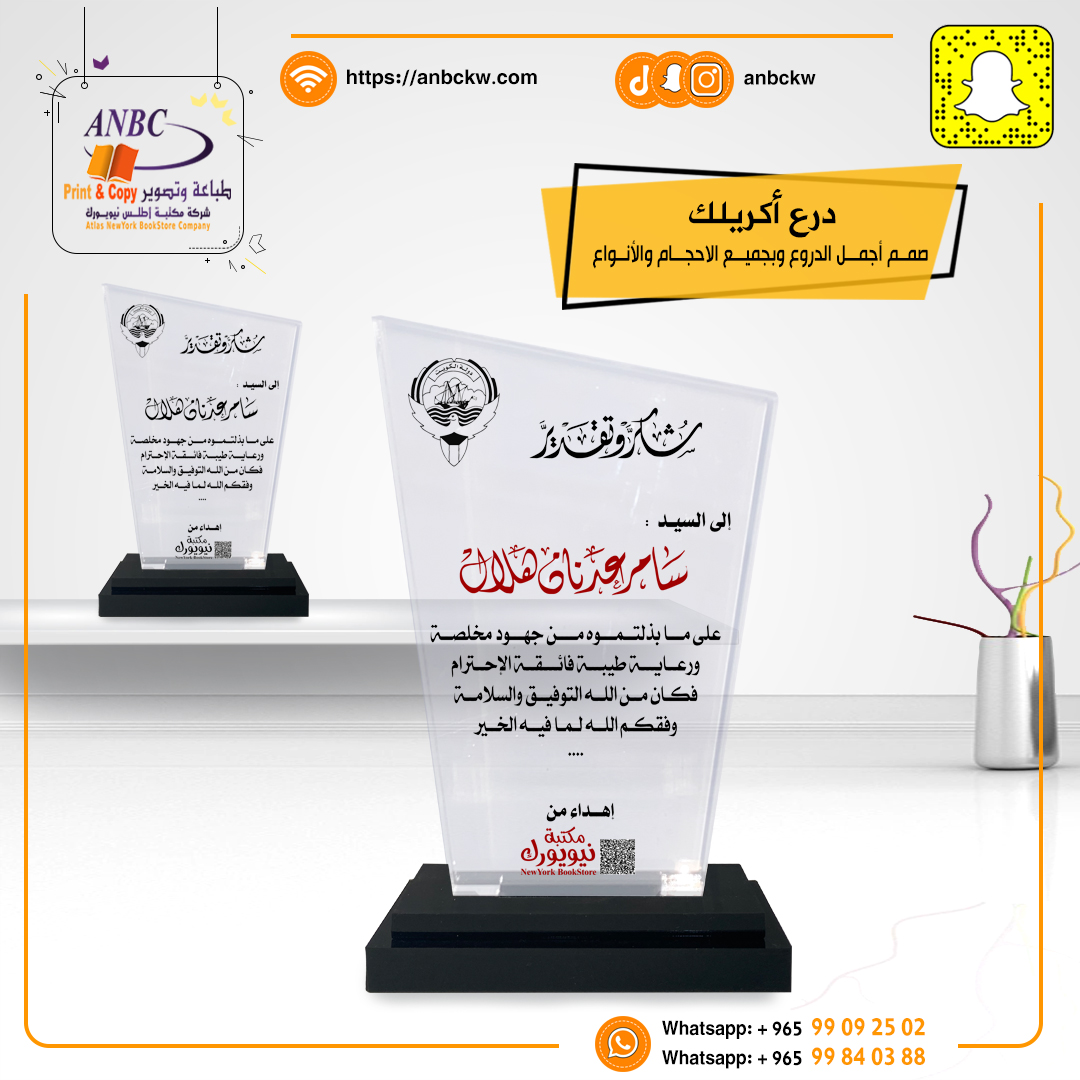 درع أكريليك مع الطباعة وعلبة جلد لون أسود Acrylic shield with print and black leather case